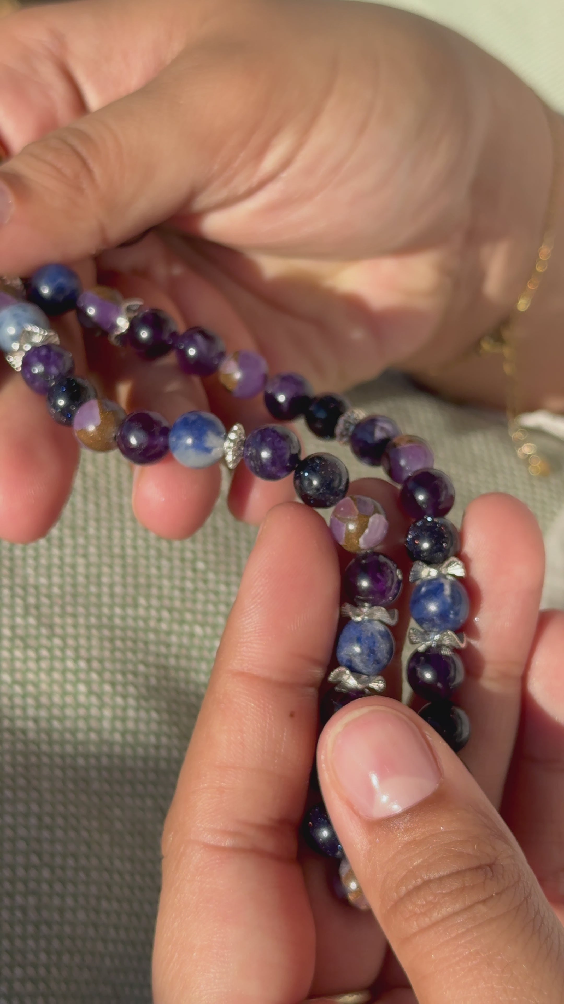 Pierres naturelles : améthyste, sodalite, pierre de nuit, charoïte